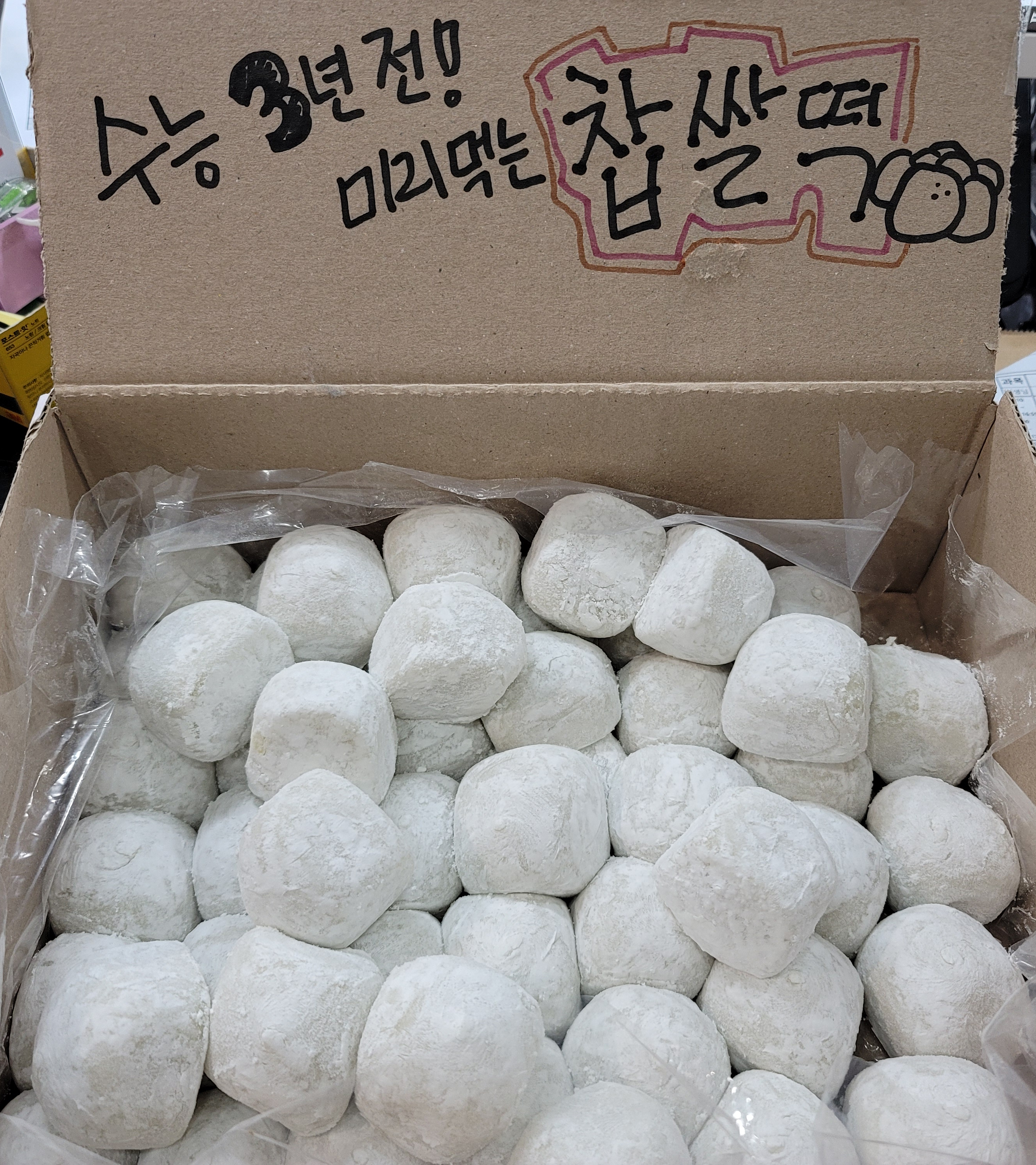 더불어 현 고1, 고2 그리고 예비고1(중3) 학생들도 수능 분위기를 같이 느끼도록 '찹쌀떡 이벤트'를 진행하였답니다 ??.jpg)